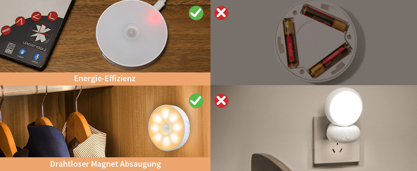 Durch das innovative Magnet- und Bügeldesign ist das Nachtlicht abnehmbar und eignet sich ausgezeichnet für eine Vielzahl von Einsatzorten: vom Treppenhaus über Flure, Schränke, Schlafzimmer, Küchen und Bäder bis hin zu Kinderzimmern und Schubladen. Auch als Geschenk für Freunde, Eltern oder Kinder ist dieses Nachtlicht perfekt geeignet. Hinweis: Achten Sie darauf, die Leuchte nicht zu nah an anderen Lampen zu installieren, um deren Funktion nicht zu stören.