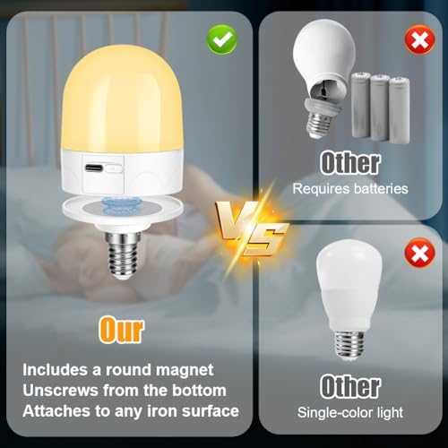 Die smarte LED-Lampe ist sowohl für die E14-Schraubfassung als auch für die magnetische Befestigung geeignet und kann an jeglichen Metalloberflächen montiert werden. Ihr kompaktes und leichtes Design macht sie ideal für viele Bereiche, sei es im Esszimmer, Wohnzimmer, Schlafzimmer, auf der Terrasse, in der Küche, im Kleiderschrank, im Eingangsbereich oder sogar für die Nutzung in Zelten, Wohnmobilen, Garagen, Fluren und Treppenhäusern.
