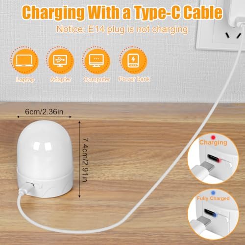 Die AUAUY wiederaufladbare Glühbirne überzeugt durch ihre innovative magnetische Befestigung, die ein müheloses Herausnehmen für das Aufladen ermöglicht. Mit dem leistungsstarken USB-C-Ladeanschluss wird die Lampe in nur 4–5 Stunden vollständig aufgeladen. Der integrierte 2000-mAh-Akku sorgt für beeindruckende 12–45 Stunden Dauerlicht – somit gehören lästige Batteriewechsel der Vergangenheit an.