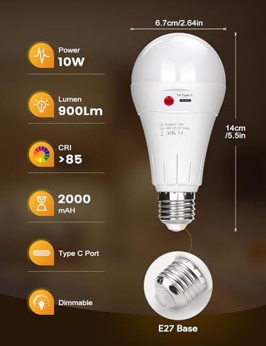 Energizer USB-C Wiederaufladbare Glühbirne 10W, Dimmbar mit Knopfsteuerung, Ideal für Innen/AußenbeleuchtungEnergizer USB-C Wiederaufladbare Glühbirne 10W, Dimmbar mit Knopfsteuerung, Ideal für Innen/Außenbeleuchtung