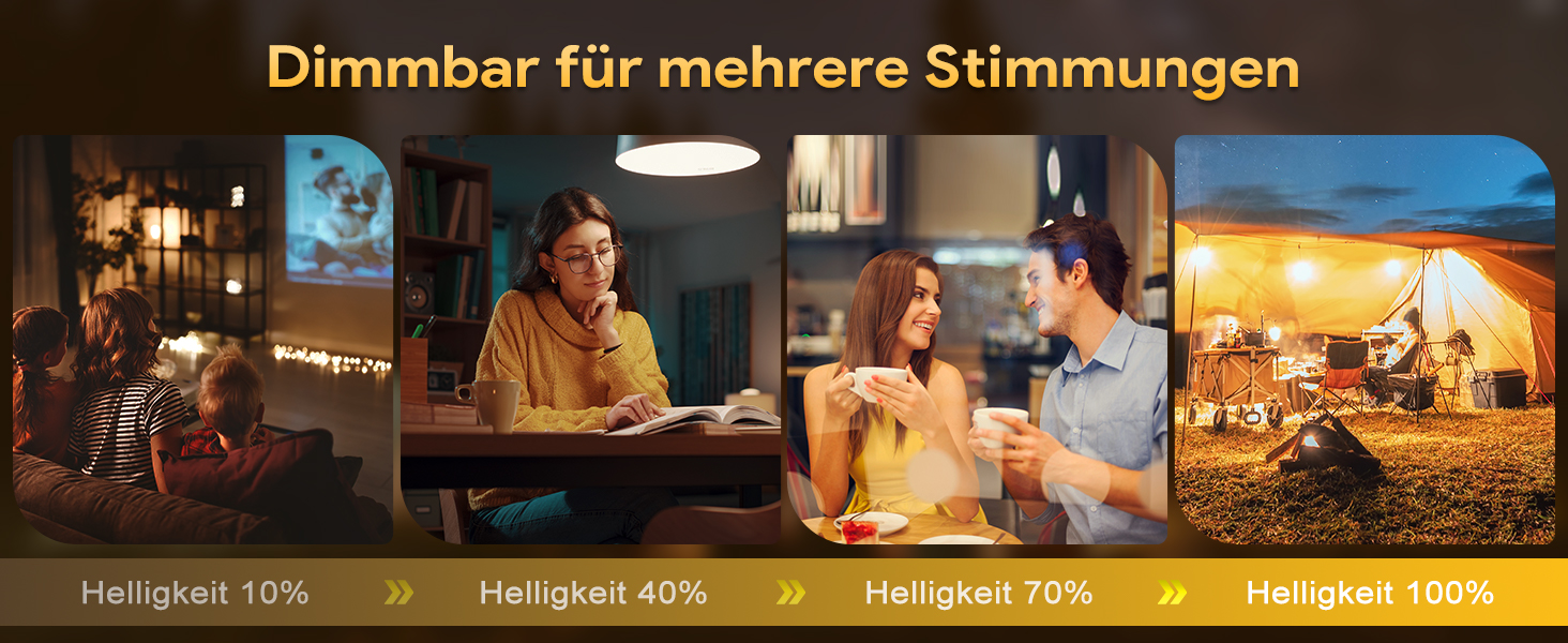 • Dimmbare Helligkeit: Individuell einstellbare Lichtintensität von 0 – 100% für die perfekte Atmosphäre in jedem Raum.