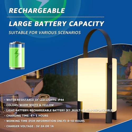 Ausgestattet mit einem hochwertigen Akku, der über das mitgelieferte USB-C-Kabel aufgeladen werden kann, bietet diese Lampe eine Ladezeit von nur 4-5 Stunden. Nach einer vollständigen Ladung leuchtet sie für beeindruckende 8-10 Stunden, was sie zu einem praktischen Begleiter für lange Abende macht – egal ob drinnen oder draußen.