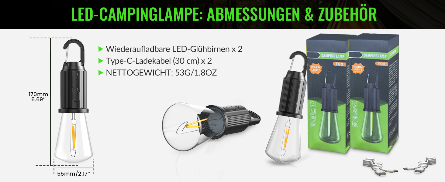- Vielseitige Anwendung: Ideal für Camping, Wandern, Fischerei und als Nachtlicht oder Notbeleuchtung zu Hause – ein echtes Multitalent.