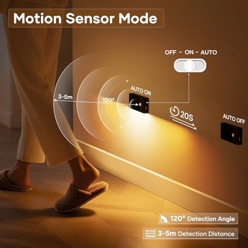 Ausgestattet mit einem hochempfindlichen Bewegungssensor und einem Infrarot-Bewegungssensor, erkennt dieses Nachtlicht Bewegungen in einem Umkreis von bis zu 5 Metern und einem Erfassungswinkel von 120°. Es aktiviert sich automatisch für 20 Sekunden, wenn das Licht schwach ist und eine Person oder ein Haustier vorbeigeht. Dies sorgt dafür, dass das Nachtlicht ideal für den Gebrauch im Dunkeln ist und tagsüber keinen unnötigen Strom verbraucht.