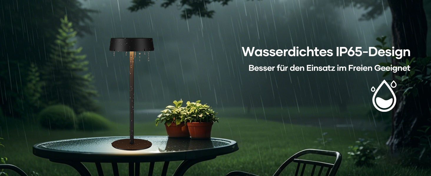 Hergestellt aus hochwertigem ABS und robustem Metall, punktet die Tischlampe nicht nur durch ihr elegantes, schwarzes Design, sondern auch durch ihre Langlebigkeit. Mit einem wasserdichten IP65-Design und einer speziellen Silikon-Dichtungsabdeckung bleibt der USB-C-Anschluss optimal geschützt. So können Sie die Lampe selbst in feuchten Umgebungen sorgenfrei verwenden.