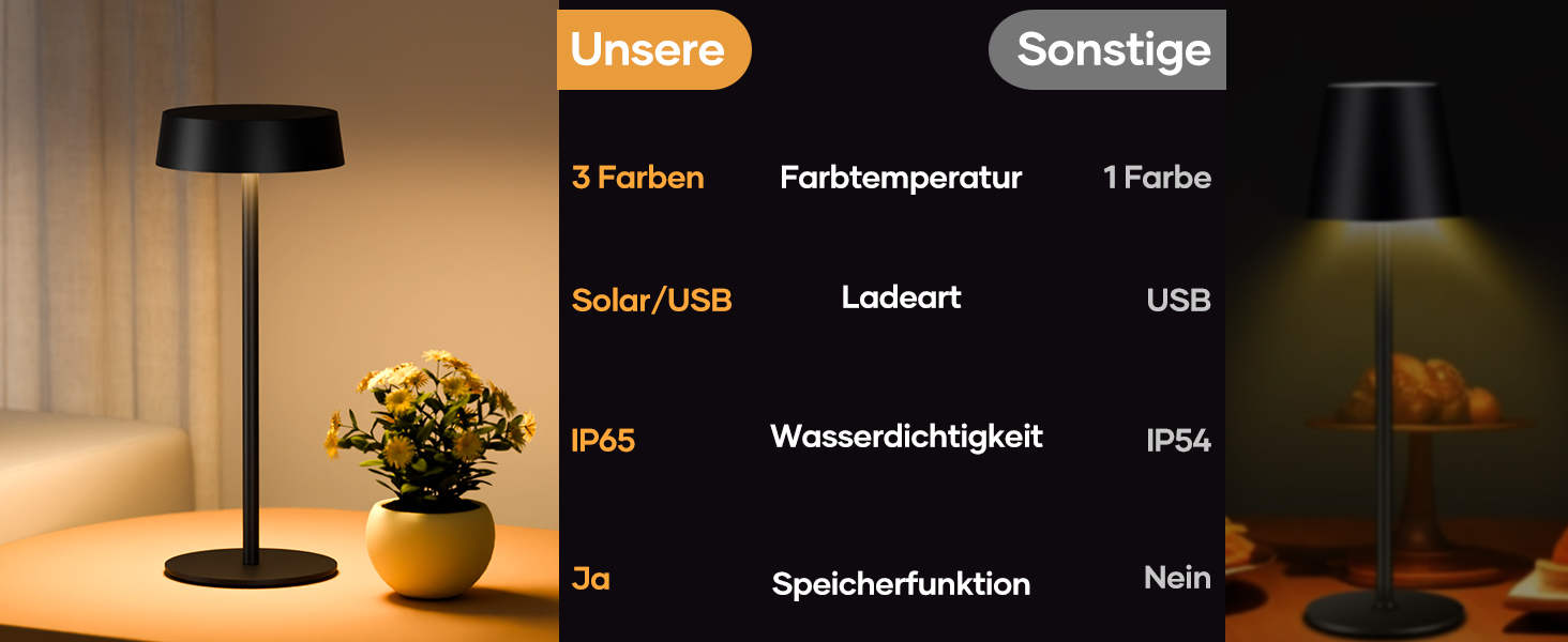 Erleben Sie die perfekte Kombination aus Funktionalität und modernem Design mit unserer hochwertigen Akku Tischlampe – ideal für jede Situation!